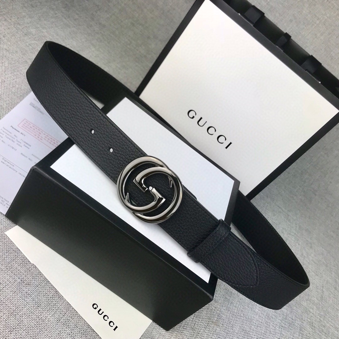 G*u*i wide leather belt with double g
