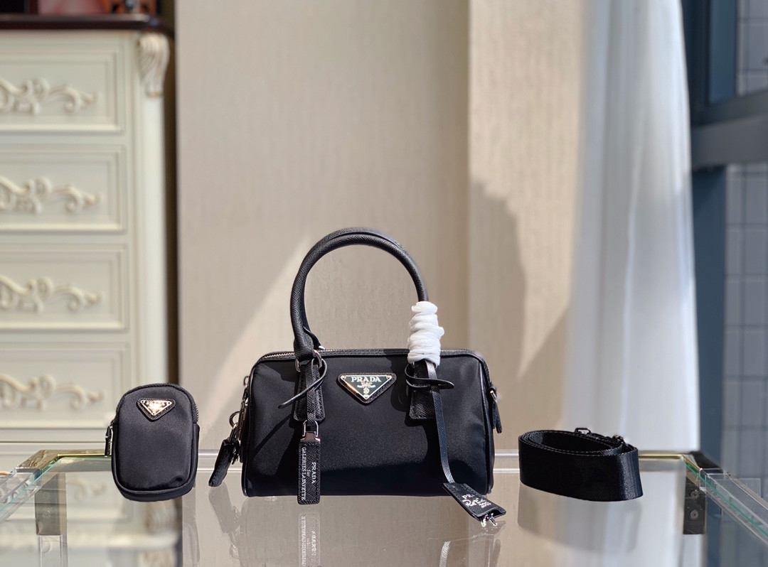Pra*a large leather shoulder bag with topstitching